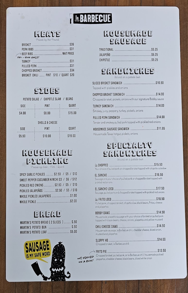 Welcome to la Barbecue, a beloved barbecue restaurant nestled in the vibrant heart of Austin, TX. If you're a fan of succulent, smoky meats, this gem located at 2401 E Cesar Chavez St is a must-visit. Renowned for its mouthwatering brisket and authentic Texas barbecue, la Barbecue invites you to indulge in a one-of-a-kind culinary experience that you'll find hard to forget.